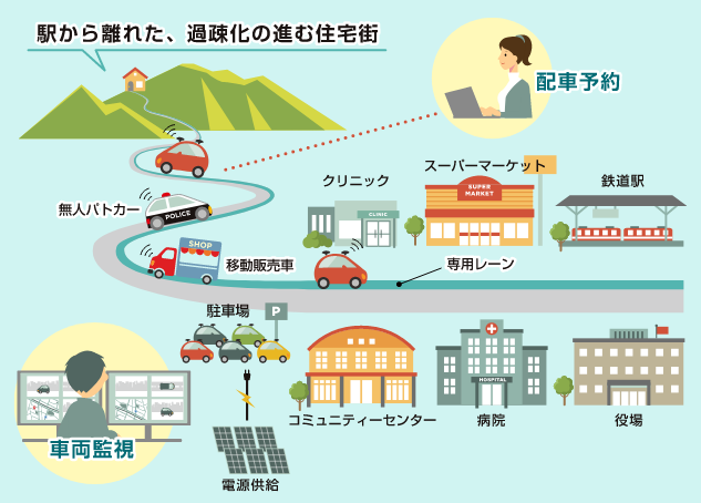 行政や医療福祉サービスの提供や、無人パトロールで地域の暮らしを支えたり、無人移動販売など、新しいビジネスまで、行政と民間が協力して、街の経済を活性化するアイデアが生まれます。